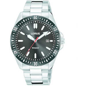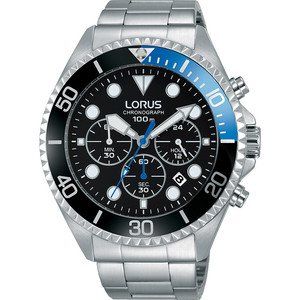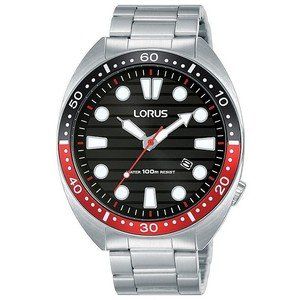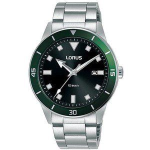 Cronografo Da Uomo Di Lorus Della Collezione Sports. Cronografo Con Movimento Al Quarzo, Caratterizzato Da Misurazione Fino A 60 Minuti In Incrementi Di Un Secondo E Indicatore Delle 24 Ore E Datario. Cassa In Acciaio 45 Mm, Sfere Con Lumibrite, Vetro Minerale E Fondello A Vite. Modello Con Lunetta Zigrinata In Acciaio Con Trattamento Ip Verde E Bracciale In Acciaio E Tripla Chiusura Pieghevole Con Pulsante Di Rilascio. La Resistenza All'Acqua È Di 10 Atm. La Referenza È Rt321Gx94